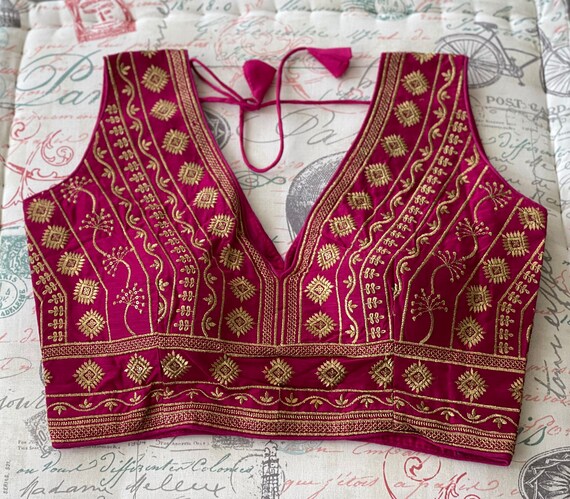 Buy Designer V Neck Silk Blouse With Gold Thread Embroidery Work Online In India Etsy